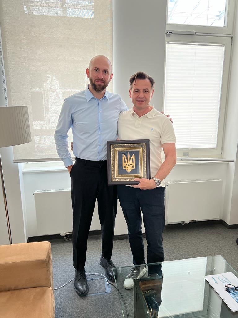 Political talks with Mayor of Mukachevo Mr. Andriy Baloha on future aid deliveries and the potential for establishing a prefab housing factory in Mukachevo